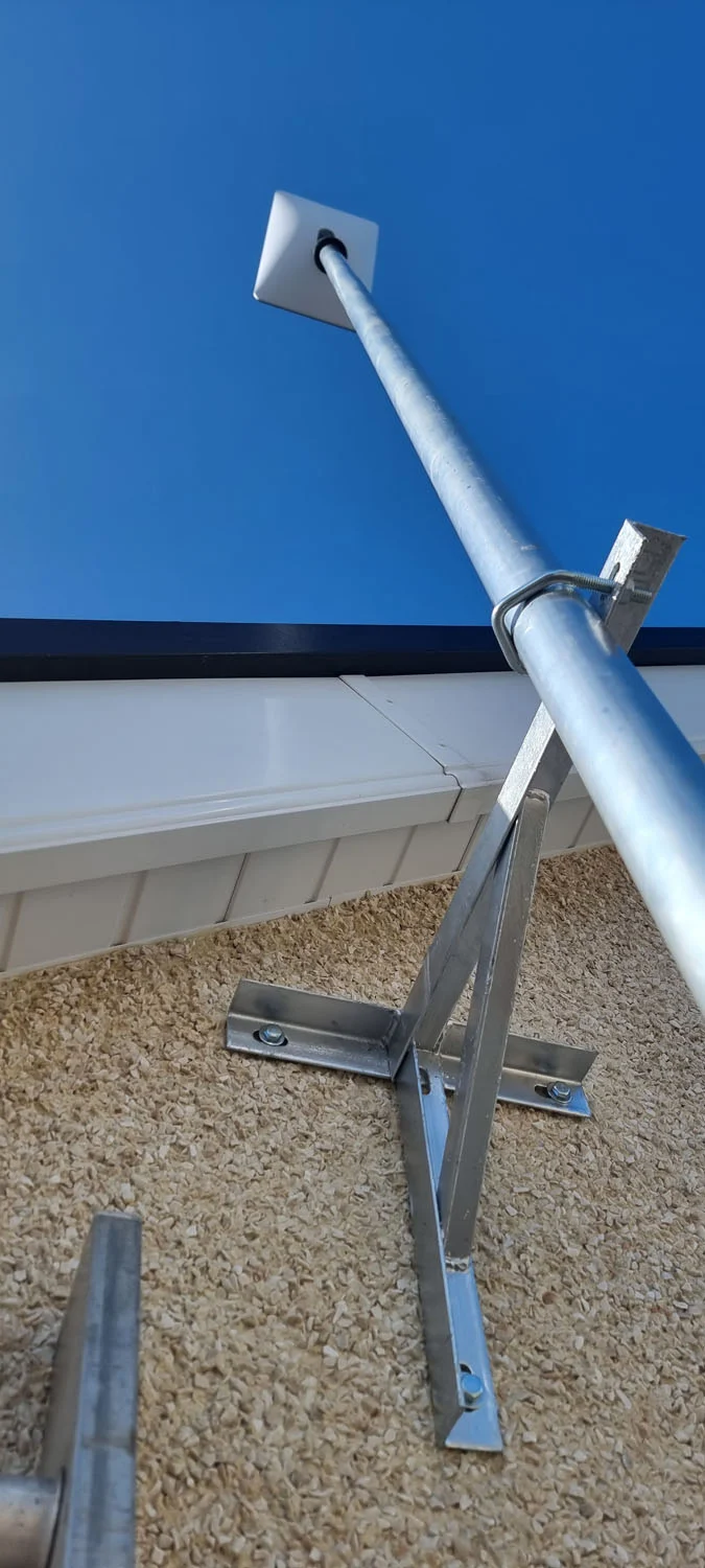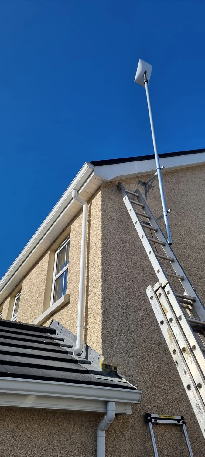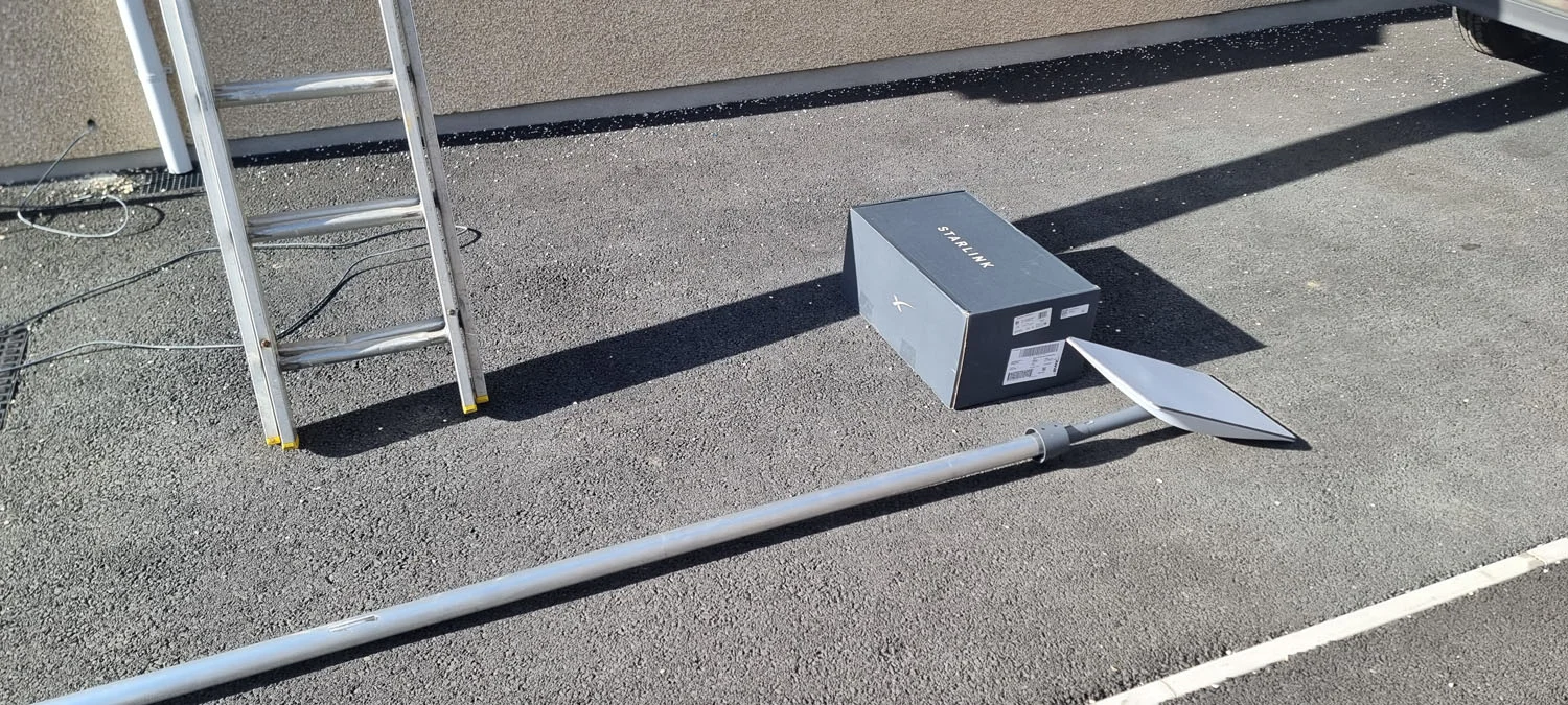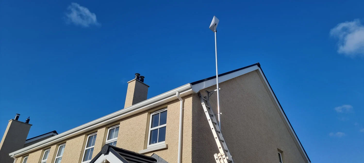 The installation involved the provision of a heavy-duty galvanised T&K bracketry with an additional steel mast for extra durability. To ensure an unobstructed line-of-sight to the sky, the Starlink antenna was mounted on the gable end of the property slightly higher than standard,